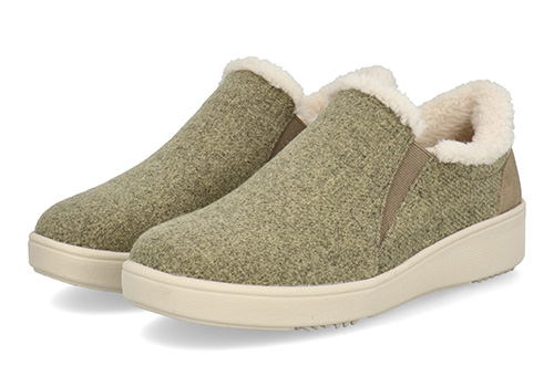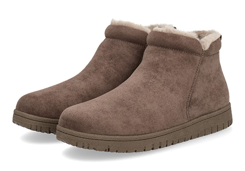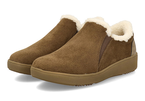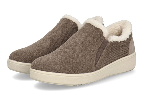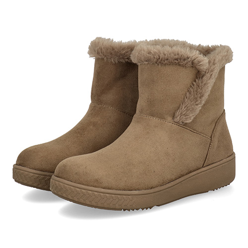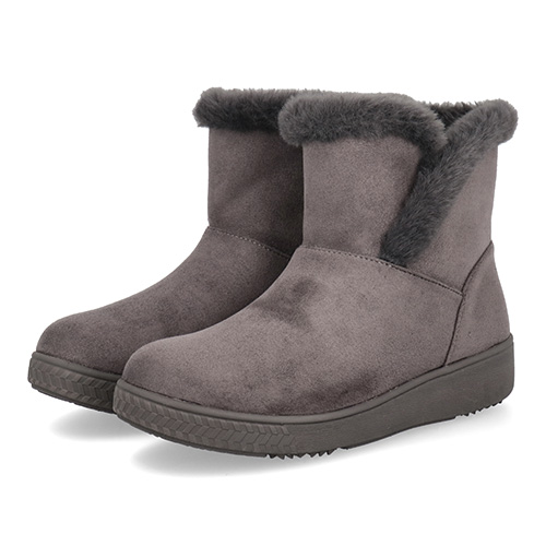 シンプルですっきりとしたデザインに季節感のあるアッパー素材がよく映えるルックスです。あたたかな履き口のボアやチラリとのぞくサイドゴアのラインも、愛らしい見た目で足元のアクセントになっています。
