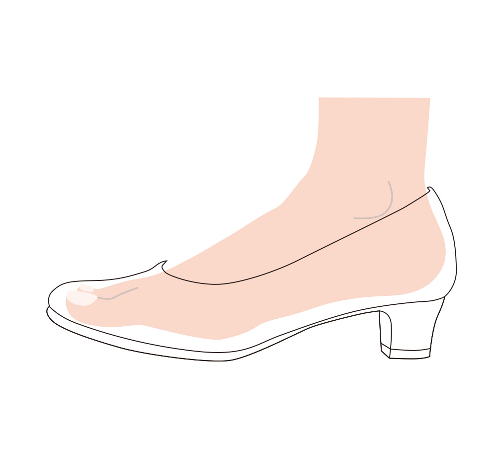 スニーカーと同じ表記サイズのパンプスを選ぶと足のサイズより大きくなるので注意。